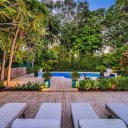 All’esterno, un rigoglioso giardino tropicale avvolge l’elegante area piscina privata, creando una vera e propria oasi di tranquillità, ideale per momenti di relax o per ricevere ospiti in un contesto esclusivo.