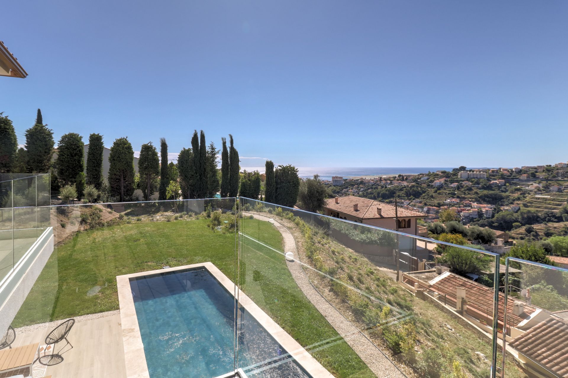 Immerso e idealmente situato sulla collina molto ricercata della Corniche de Magnan, a 10 minuti dal centro della città, su un terreno di 1200 mq ben piantumato con specie mediterranee, con bellissimi muri in pietra faccia a vista, e beneficiando di una piscina, il tutto con una splendida vista sul mare e sulle montagne, vi presento questa casa contemporanea di giugno 2024, su 120 m2 offre servizi di fascia alta.