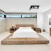 Il vero protagonista della residenza è la suite padronale, concepita come un’opera architettonica: una scenografica parete in cemento a vista, una raffinata zona notte con piattaforma in legno sospesa e suggestivi lucernari che diffondono luce naturale durante tutto il giorno.