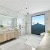 vasca scultorea free-standing accanto a una grande finestra panoramica