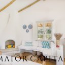 Gli interni eleganti e luminosi raccontano la bellezza della semplicità: spazi ampi e ariosi che fondono il minimalismo contemporaneo con dettagli boho e tocchi di colore che ricordano il calore del Messico. Nel primo corpo principale, una zona giorno con camino invita a serate intime, mentre una cucina in legno su misura si apre su una terrazza esterna ideale per cene sotto le stelle.