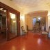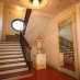 L’ingresso presenta un lungo ed ampio corridoio che attraversa la dimora in tutta la sua lunghezza, confluendo nel giardino retrostante bordato da ortensie. Ai lati del corridoio si sviluppano gli ambienti che stupiscono per la loro raffinatezza capace di coniugare il fascino dell’antico e la funzionalità del presente. La sala del biliardo anticipa quella dedicata all’ospitalità: l’importante tavolo che la abita è realizzato in un unico pezzo e accoglie al suo cospetto un alto numero di commensali.