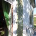 Un’ampia ed originale finestra ad oblò si apre sul giardino e determina un’ulteriore scelta di stile nel disegno ovale sulla luce.