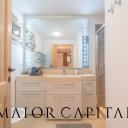 Al piano superiore, la camera padronale si configura come una suite privata con bagno en suite e accesso diretto al giardino e alla piscina, offrendo una prospettiva esclusiva sul mare.