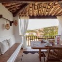 Immagina di essere accolto da un intreccio di buganvillee che incorniciano archi di pietra e ti conducono in un viale pedonale vista mare. Il tuo percorso arriva verso una adorabile villa di 151 mq .inserita in un tipico villaggio affacciato sul mare, a pochi passi da una comoda spiaggia, completa di ogni servizio. Un tipico portone in legno si apre su di un primo ingresso che ospita a sinistra il bagno della .zona giorno e a destra la vista della scala che conduce alla zona notte fornita di ulteriore ingresso indipendente. Entrando lo sguardo spazia verso il mare e per l’esposizione lo spettacolo della luce e del mare è costante in tutte le fasi della giornata Il living candido, spazioso con travi a vista sbiancate che enfatizzano lo spazio, è l’ideale per piacevoli momenti conviviali con gli amici o attimi di relax vista mare Dal living si accede alla spaziosa sala da pranzo con vista anche questa sulla baia. Una cucina in nicchia, dalle linee pulite e lineari, completa di tutti gli elettrodomestici è l’ideale per preparare pranzi e cene da servire nel -terrazzo coperto, attiguo alla zona giorno uno dei molteplici spazi esterni di questa proprietà. Sempre nella cucina troviamo una zona lavanderia estremamente funzionale I materiali scelti sono freschi ma dai toni caldi, come i tessuti per i quali i lini, i cotoni spazzolati e la semplicità di dettagli naturali, creano una serie di accostamenti armoniosi. Un unica nota di colore per la poltrona di design che riprende il colore delle fioriture tipiche del luogo. Dalla comoda scala si accede al piano inferiore, il quale affaccia interamente sul giardino di proprietà esclusivo. Dal disimpegno del secondo ingresso che coniuga i toni dell’ écru a quelli del verde mare, si accede alla zona notte .Due ampie camere matrimoniale ognuna con un bagno di pertinenza La master bedroom ha un accesso diretto al patio, nel quale si pu assaporare un aperitivo nelle serate estive affacciati verso il mare e verso il verde del giardino La seconda camera matrimoniale, affaccia attraverso la porta finestra, anche questa allo spazio esterno Per questa stanza si sono scelti i lini dei tessuti e la freschezza dei toni grigi e bianchi. Per la sua posizione particolare i raggi del sole entrano delicatamente attraverso i tendaggi nelle prime ore del giorno. Villa Sunrise è situata all’interno del residence Gli Oleandri a Liscia di Vacca Costa Smeralda nel quale gli ospiti possono accedere ad una piacevole piscina condominiale, circondata da materiali del luogo. Il giardino di 270mq di proprietà è ad uso esclusivo e un comodo posto auto completano questa villa dal sapore unico dove trascorrere momenti di relax. La zona nella quale la villa è posizionata si trova di fronte a dove un tempo si trovava l’hotel Le Palme, questa zona è soggetta ad un intervento di valorizzazione importante in quanto qui sorgerà un hotel 5 stelle lusso gestito da un brand internazionale.