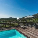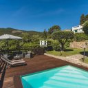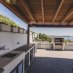 All'esterno, il giardino rigoglioso è arricchito da una piscina panoramica e diverse zone relax, ideali per godere del clima mite della zona. La villa è anche dotata di un'area barbecue e di spazi per intrattenere gli ospiti, rendendola perfetta per eventi e cene all'aperto.