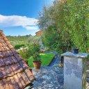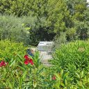 Il giardino, esteso per 1770 mq, ospita 50 ulivi e un frutteto.