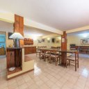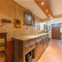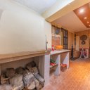 Il piano seminterrato ospita una splendida sala hobby in stile rustico, caratterizzata da colonne rivestite in legno e da un camino in muratura, con accesso indipendente sull’esterno tramite rampa privata.