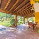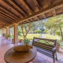 All’esterno, un elegante portico con travi in legno massello circonda la villa, rendendo ogni stagione piacevole da vivere e offrendo ulteriori spazi per il relax e la convivialità.