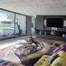 Fin dall’ingresso si impongono volumi maestosi. L’immenso spazio living, inondato di luce naturale, si apre completamente verso l’esterno grazie a vetrate monumentali che cancellano il confine tra interno ed esterno. L’architettura interna si distingue per la scelta di materiali nobili e audaci: una parete d’accento in cemento a vista, parquet caldo e un spettacolare scalone sospeso in legno massello che si innalza come una vera opera d’arte.