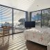 La progettazione fluida conduce alla zona notte, dove le camere da letto — veri e propri cocon affacciati sul Mediterraneo — godono anch’esse di ampie aperture e di frangisole orientabili (BSO) per un controllo perfetto della luminosità.