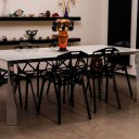 Scendendo al piano cantinato, la zona dedicata alla convivialità cattura subito l’attenzione: una cucina in acciaio dallo stile industriale si combina con un’accogliente area relax, perfetta per intrattenere ospiti in un’atmosfera sofisticata e informale.