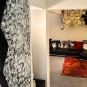 Entrando, si viene accolti da un ampio salone moderno, arredato con pezzi di alto design che conferiscono personalità e raffinatezza agli ambienti. Sempre al piano terra troviamo un bagno elegante, progettato con cura nei dettagli e dotato di tutti i comfort.