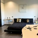 Al piano superiore si sviluppa la zona notte, accessibile tramite una scala di design. Qui si trovano due camere da letto, entrambe con balconi affacciati sul parco. La camera padronale si distingue per la presenza di una vasca da bagno di design, un lavabo dal gusto ricercato e un bagno privato. Accanto, la camera per gli ospiti, altrettanto confortevole, completa questa area con stile.