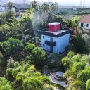 Questa residenza, con una superficie interna di 148 mq, è circondata da un parco privato di circa 3.000 mq arricchito da sculture artistiche e offre una splendida vista panoramica sulle Isole Eolie.