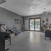 Alpiano terra, cuore conviviale della villa, troviamo unaspettacolare zona living open space in stile americano, impreziosita daampie vetrate panoramicheche inondano gli spazi di luce naturale e creano una continuità armoniosa con il giardino.