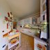 La sala é doppia con un bel camino poggiato su una quinta che separa dalla zona di accesso alla cucina con ripostiglio/ lavanderia ed al bagno.