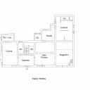 Corpo principale (401 mq lordi) Ampia zona giorno con sala tripla, soppalco e camino in pietra, accesso al giardino , Cucina abitabile con camino e zona lavanderia. Due camere e bagno.