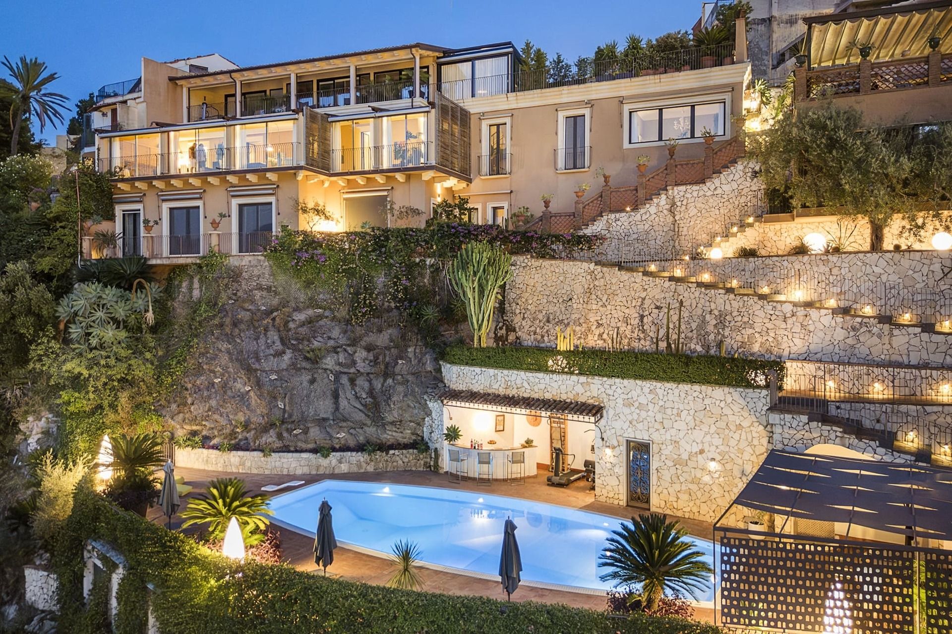 In posizione strategica e riservata, la proprietà permette di raggiungere a piedi ristoranti, boutique, locali sul mare e la funicolare per il centro storico di Taormina, garantendo il perfetto equilibrio tra privacy, comfort e vivacità mediterranea.