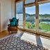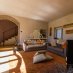 La prima abitazione si apre con un ampio salone, dove il camino e le vetrate creano un’atmosfera avvolgente, piena di luce e calore.