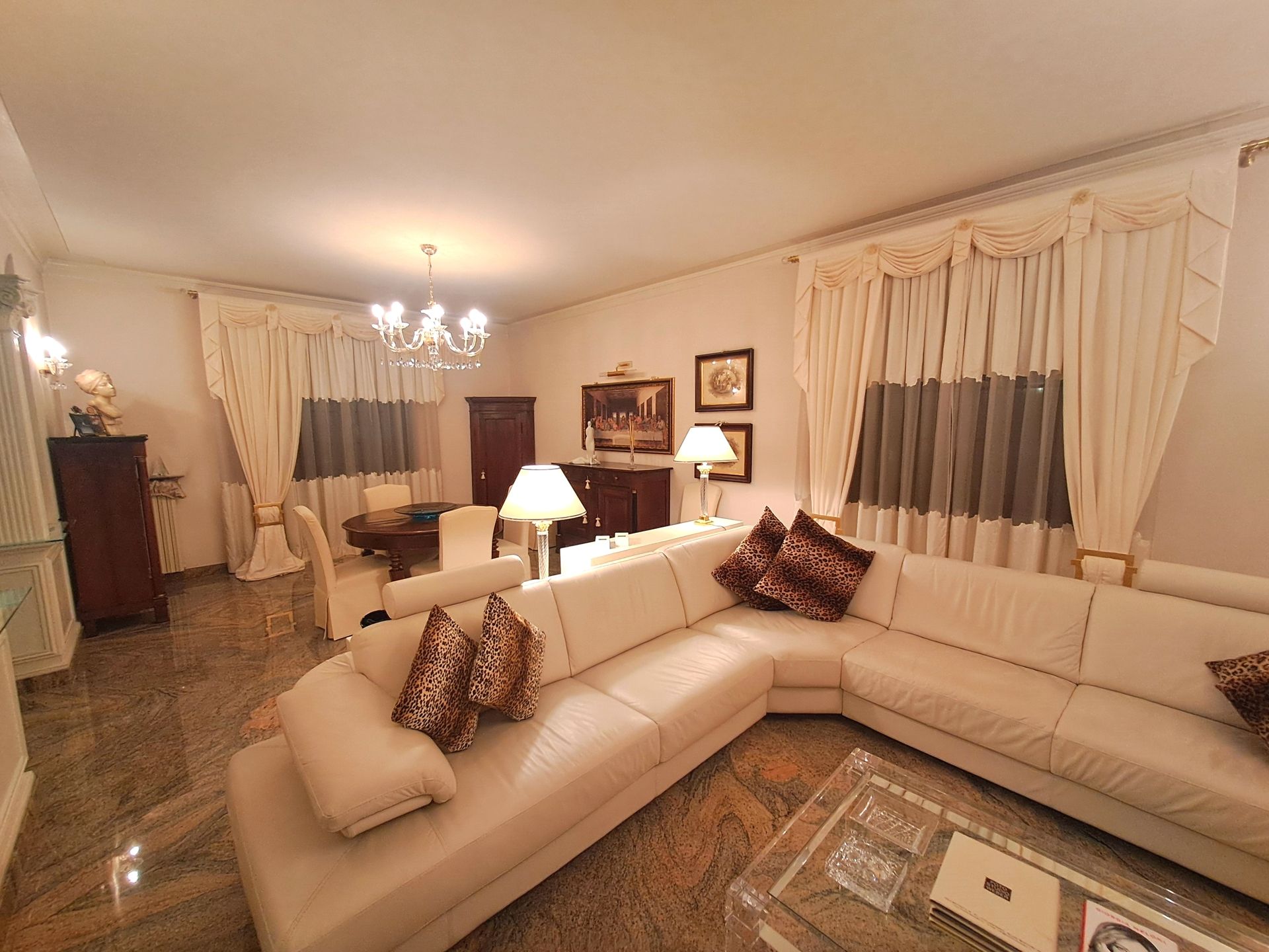 Varcate la soglia e lasciatevi avvolgere dalla luminosità del soggiorno pranzo, uno spazio generoso dove la luce naturale dialoga con l'elegante caminetto, creando quell'atmosfera di comfort raffinato che trasforma una casa in un rifugio.